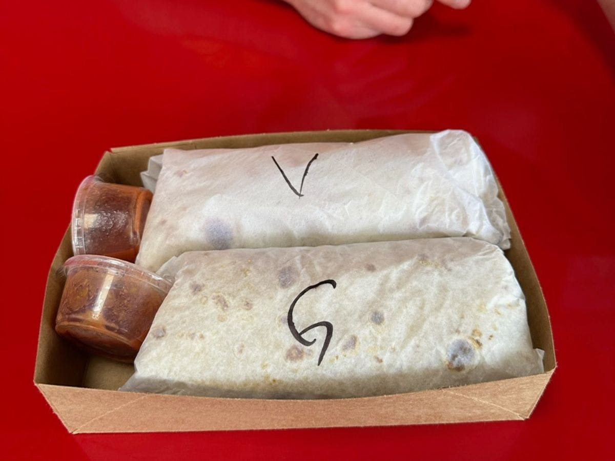 We tried a classic bean and cheese, a pork chile verde, and a chicken and rice skipper burrito. If you're looking for catering, buy them by the dozen.