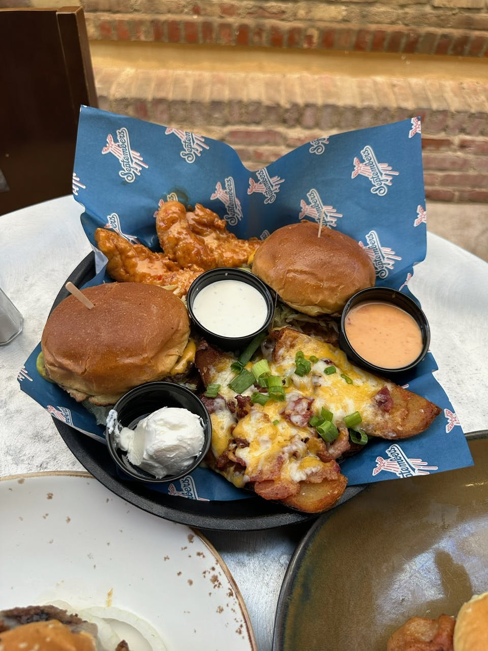 For Dodger fans, September’s is running a deal all season long called the Dodgers Triple Play Special. This meal comes with 2 juicy sliders, savory bang bang chicken strips, and fully loaded potato skins. You can pair this home run with a Dodgerita (a classic margarita with blue curacao in a souvenir September’s cup) or a Dodger Flocking Blonde (a traditional American-style blonde ale, showcasing citrus and floral aromas).