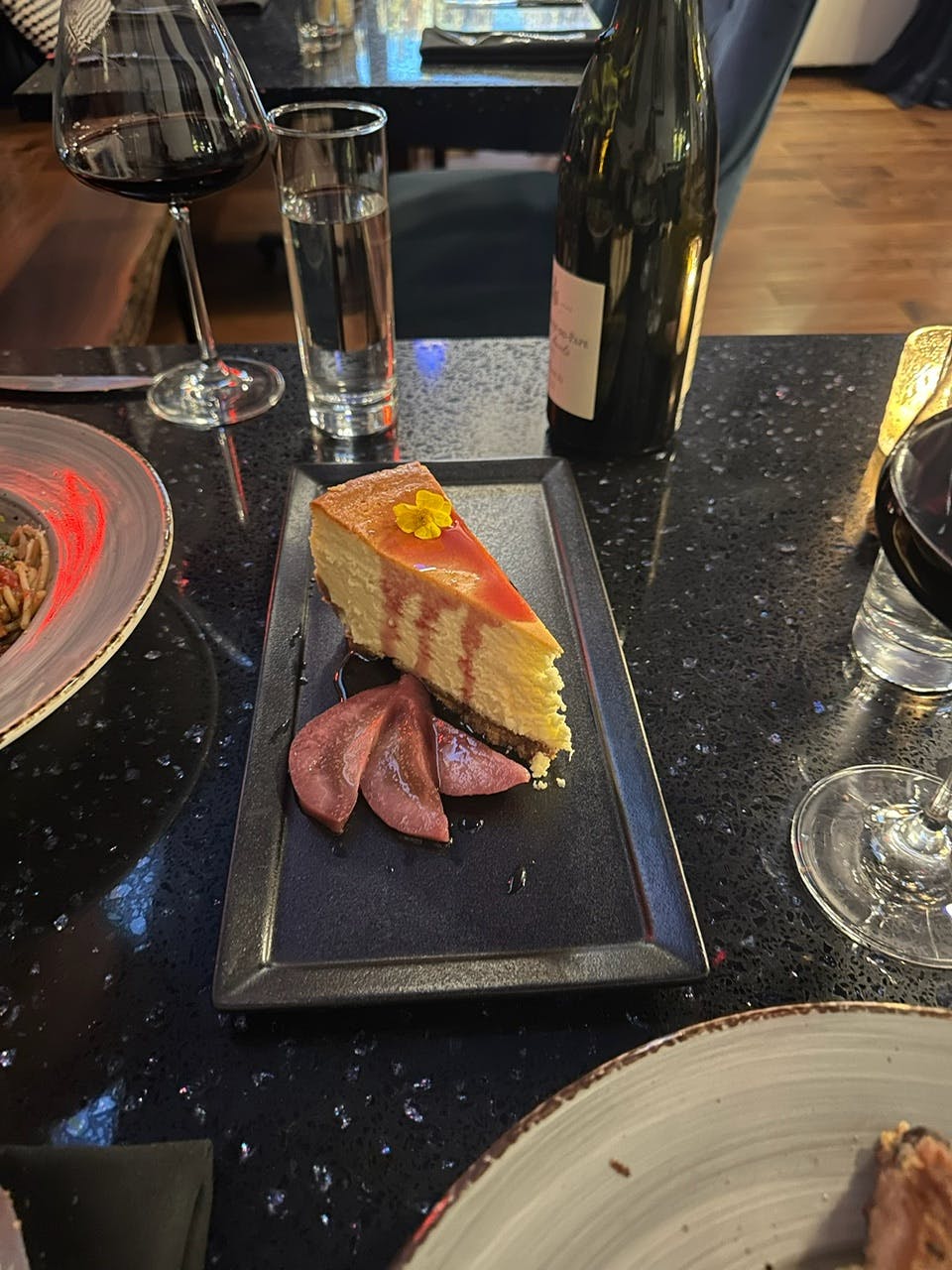 - Red Wine Poached Pear Cheesecake — This thin pecan-crusted cheesecake was so light and delicious. The poached pears were a savory addition to the classic that we loved.