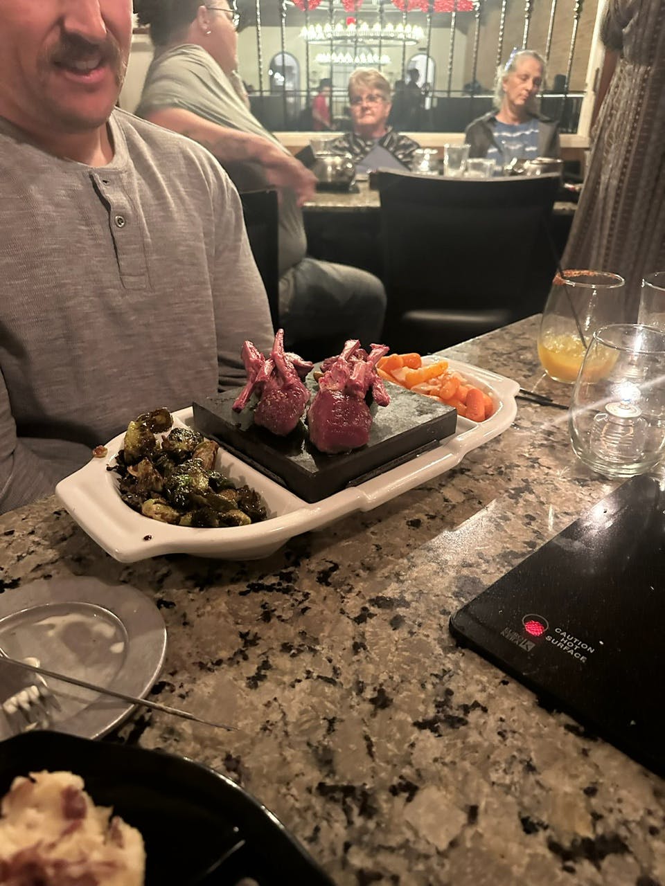- Lamb Rok — Served with carrots and brussels sprouts. We took the chef’s tip and added Merlot butter on top!
