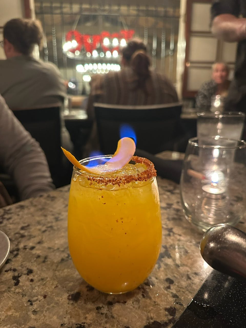 - Mango Margarita — This drink was recommended as the hottest cocktail on the menu, literally. The bartender came by to add some fanfare to the drink by lighting the top of it on fire! They also added some “fireworks” with cinnamon sparks!