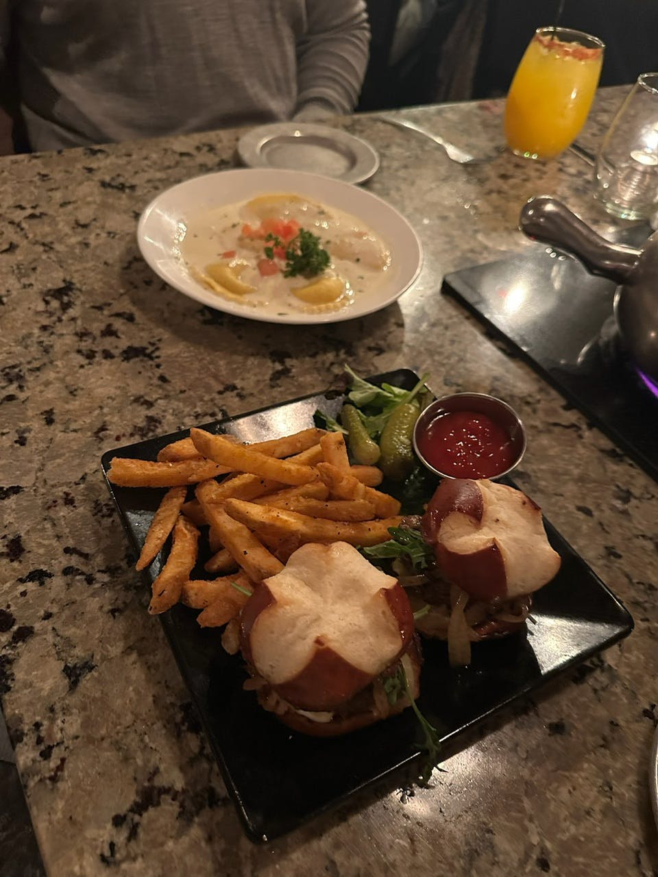 - Sun Dried Formaggio Fondue — This fondue was like enjoying cheese pasta with some fun dip-in options. From bread to veggies and even granny smith apples! The fondue was a fun intermission for our Date Night, and the staff was very interactive and friendly.