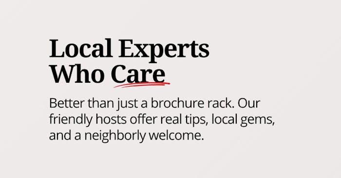 A team of friendly, knowledgeable hosts offers personalized guidance—maps, insider tips, events, restaurant recommendations, local shopping, hiking routes, and more. Visitors often remark how it feels like chatting with a neighbor, not a brochure machine — although staff will happily answer questions about featured, local businesses.